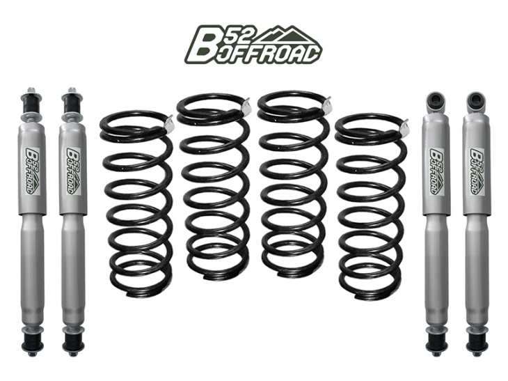 Lift kit B52 OFFROAD +4/5 cm:-4 B52 coils-4 B52 shocksimproved handling and control ON and OFF-ROADB52 coils are made with processes to ensure the highest possible quality.-CNC cold coiled to ensure perfect consistency and accuracy-shot peened: manipulates material surface tension to reduce stress, greatly enhances spring life-heat treatment-powder coatedB52 shocks nitrogen gas pressurised:the advantages of B52 shocks:-low pressure nitrogen gas drammatically reduces the likelihood of oil aeration and shock fade-54mm body diameter-35mm piston-16mm rod-high strengh rubber bushes-fusion welded and supplementary welded mounts for maximun strengh and reliability-specially valved for each vehicle applicationFOR LAND ROVER DISCOVERY 200/300TDI
