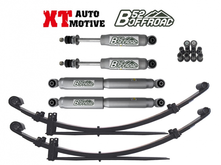 Lift kit B52 OFFROAD +5 cm:-2 XTAUTOMOTIVE leaf springs-4 B52 shocks-kit poly bushesimproved handling and control ON and OFF-ROADXT AUTOMOTIVE LEAF SPRINGS: made from high quality steel, providing raised height and flexible ride. Termal treatment, shot peened for reduced stress and improved durability and qualityB52 shocks nitrogen gas pressurised:the advantages of B52 shocks:-low pressure nitrogen gas drammatically reduces the likelihood of oil aeration and shock fade-54mm body diameter-35mm piston-16mm rod-high strengh rubber bushes-fusion welded and supplementary welded mounts for maximun strengh and reliability-specially valved for each vehicle applicationFOR MITSUBISHI L200 FROM 1996 TO 2005