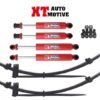 Lift Kit XT AUTOMOTIVE + 5 cm:- 2 XT AUTOMOTIVE leaf springs- 4 XT AUTOMOTIVE long travel shocks- kit poly bushesimproved handling and control ON and OFF-ROADXT AUTOMOTIVE LEAF SPRINGS: made from high quality steel, providing raised height and flexible ride. Termal treatment, shot peened for reduced stress and improved durability and qualityXT AUTOMOTIVE SHOCKS, MADE IN ITALY with the highest quality standards, iso9001:2015 certified,THE ADVANTAGES OF XT AUTOMOTIVE SHOCKS:-exclusively Hydraulic, special high quality and high strenght fluid mainteins viscosity in extreme situations-double effect-twin tube design for protection from stone damage-velocity sensitive valving for fine tuning the suspension control-61mm body diameter-38mm piston, this allow an oil quantity increased than other shocks, to not allow over temperatures and fading.-20mm ROD-all around welded steam and increased weld on loop to improve strenght-high strengh rubber bushes-INTERNAL LOCK tested to 5000kg!…this LOCK prevents topping out!-REBUILDABLE!!! It’s possibile rebuld it or change setting damper with rebuildingMADE IN ITALY!!!FOR ISUZU D-MAX FROM 2003 TO 2012