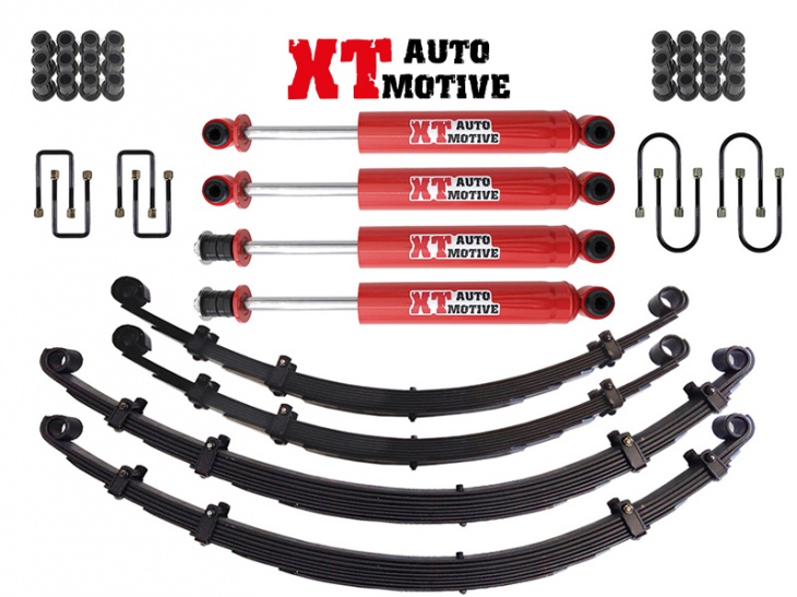 Lift Kit XT AUTOMOTIVE + 5 cm:- 4 XT AUTOMOTIVE leaf springs- 4 XT AUTOMOTIVE long travel shocks- kit poly bushes- kit u boltimproved handling and control ON and OFF-ROADXT AUTOMOTIVE LEAF SPRINGS: made from high quality steel, providing raised height and flexible ride. Termal treatment, shot peened for reduced stress and improved durability and qualityXT AUTOMOTIVE SHOCKS, MADE IN ITALY with the highest quality standards, iso9001:2015 certified,THE ADVANTAGES OF XT AUTOMOTIVE SHOCKS:-exclusively Hydraulic, special high quality and high strenght fluid mainteins viscosity in extreme situations-double effect-twin tube design for protection from stone damage-velocity sensitive valving for fine tuning the suspension control-61mm body diameter-38mm piston, this allow an oil quantity increased than other shocks, to not allow over temperatures and fading.-20mm ROD-all around welded steam and increased weld on loop to improve strenght-high strengh rubber bushes-INTERNAL LOCK tested to 5000kg!…this LOCK prevents topping out!-REBUILDABLE!!! It’s possibile rebuld it or change setting damper with rebuildingMADE IN ITALY!!!FOR TOYOTA BJ 70/71/73