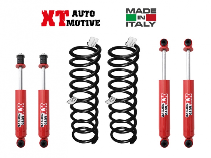 Lift Kit XT AUTOMOTIVE + 6 cm:- 2 XT AUTOMOTIVE coils- 4 XT AUTOMOTIVE long travel shocksimproved handling and control ON and OFF-ROADincreased suspention travel XT AUTOMOTIVE COILS, Made in Europe with the highest quality standards and subjected to strictly quality control tests, iso9001:2015 certified, these coils are made really for European offroad (against “australian coils” that are too heavy and unconfortable)THE ADVANTAGES OF XT AUTOMOTIVE COILS:-More confort in ON and OFF ROAD driving-Increased suspension travel (with the correct shocks)-Made really for European offroad and not for Australian offroad!XT AUTOMOTIVE SHOCKS, MADE IN ITALY with the highest quality standards, iso9001:2015 certified,THE ADVANTAGES OF XT AUTOMOTIVE SHOCKS:-exclusively Hydraulic, special high quality and high strenght fluid mainteins viscosity in extreme situations-double effect-twin tube design for protection from stone damage-velocity sensitive valving for fine tuning the suspension control-61mm body diameter-38mm piston, this allow an oil quantity increased than other shocks, to not allow over temperatures and fading.-20mm ROD-all around welded steam and increased weld on loop to improve strenght-high strengh rubber bushes-INTERNAL LOCK tested to 5000kg!…this LOCK prevents topping out!-REBUILDABLE!!! It’s possibile rebuld it or change setting damper with rebuildingMADE IN ITALY!!!FOR NISSAN TERRANO I AND II 3 DOORS