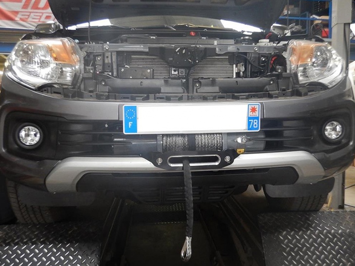 Winch mounting kit, hidden internal. It allows the winch to be mounted in a hidden position and so that the outside of the vehicle remains almost unchanged. Made of black electro-galvanized steel. Complete with fixing bolts.Fitting can require a cut of the front bumper for the hawse or cable guide and in some case require to drill across piece.FOR WINCH FROM 6000 TO 12000 LBS (winch not included)FOR MITSUBISHI L200 FROM 2016