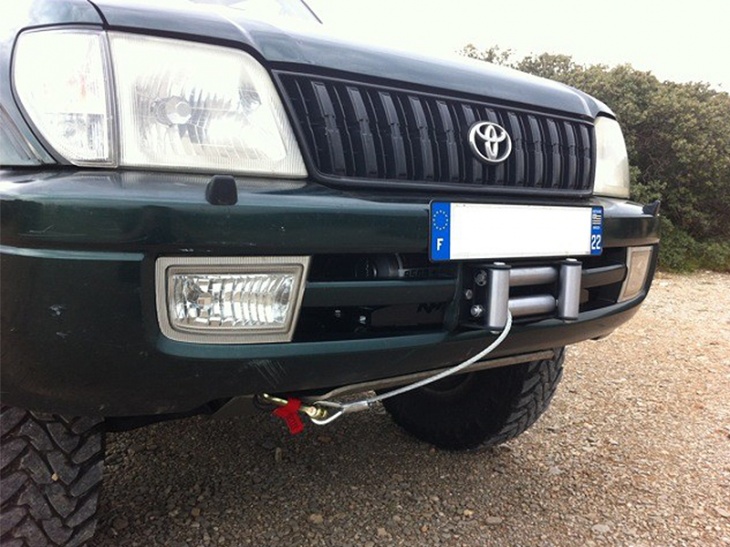 Winch mounting kit, hidden internal. It allows the winch to be mounted in a hidden position and so that the outside of the vehicle remains almost unchanged. Made of black electro-galvanized steel. Complete with fixing bolts.Fitting can require a cut of the front bumper for the hawse or cable guide and in some case require to drill across piece.FOR WINCH FROM 6000 TO 9500 LBS (winch not included)FOR TOYOTA KZJ/KDJ 90/95