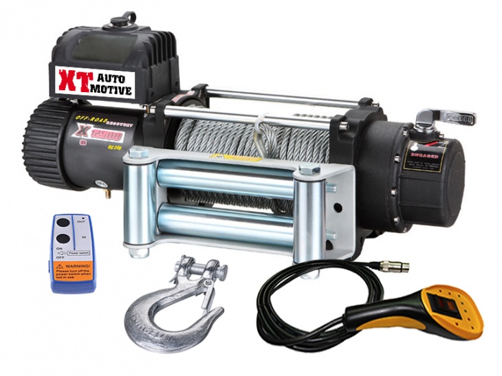 XT AUTOMOTIVE XT 12500 winch 24v, capacity 12500 lbs (5600kg), heavy duty, motor snage 8.1 HP, type Albright reinforced solenoids, supplied with 12mm DYNEEMA sk75, with wire control and radio remote control incorporated. Supplied with cable and hawse fairlead. CE conformity. Compact size and low weight.Size: 576mm x 168mm x 190mm (H)Weight: 40kgCable: 9.5mm x 26m